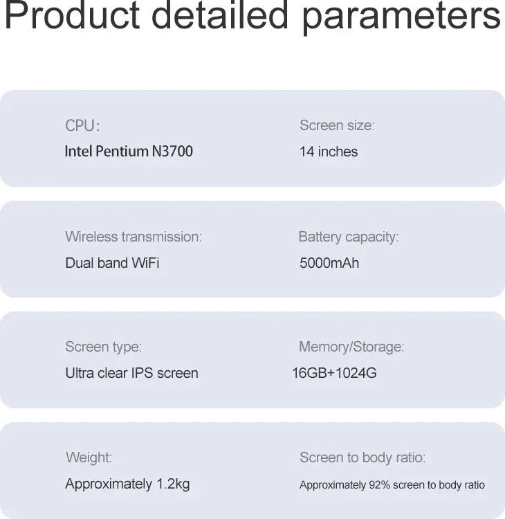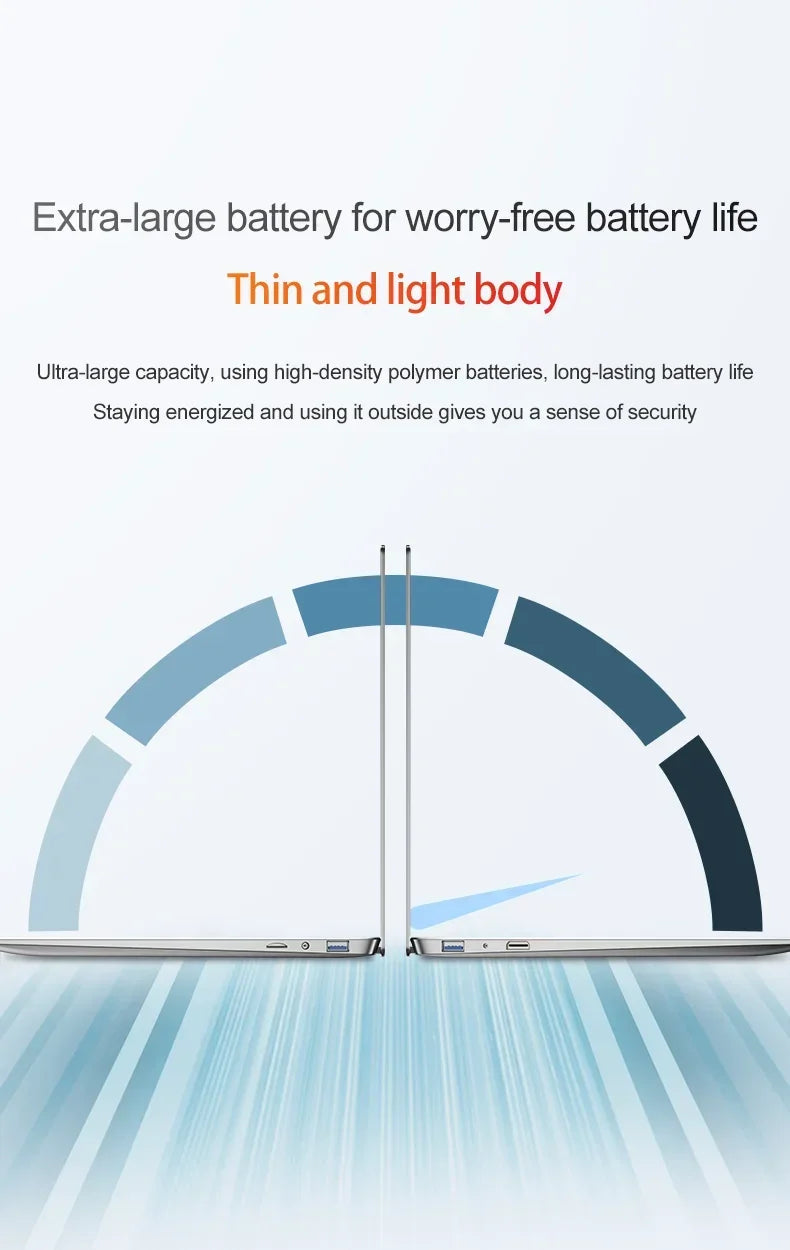 14.1"Ultra Slim Laptop Intel N3700 16GB RAM 2TB SSD Notebook Gamer 1920*1080 Display Office Study Computer PC Windows 11 Pro