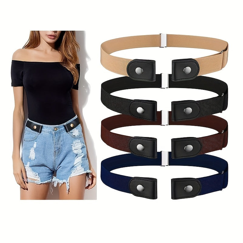 4pcs No Buckle Stretch Belt Adjustable Unisex Belt Invisible Elastic Belt For Men Women Jeans Pants Skirts