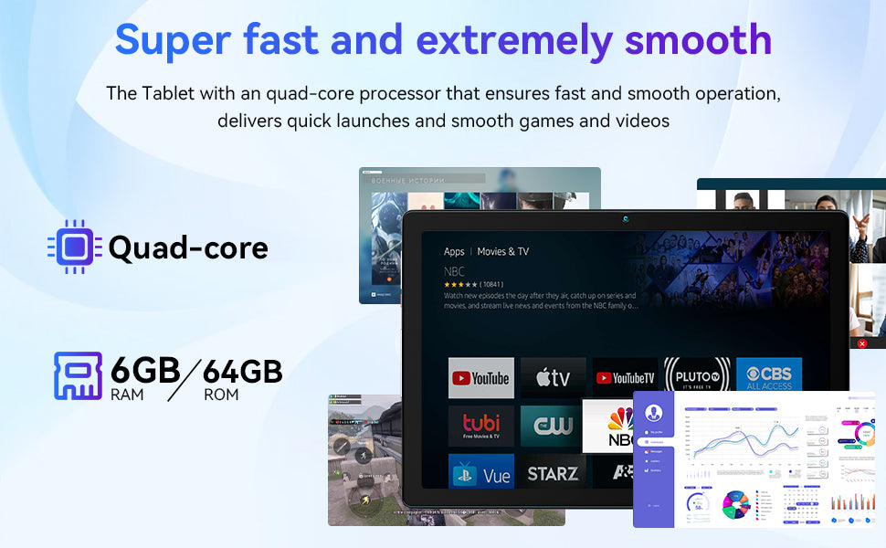 AEEZO MB1001 10 Inch Tablet Android 13 6GB RAM 64GB ROM 128GB Expandable 5000mAh Battery HD IPS Display Dual Camera Tablets PC