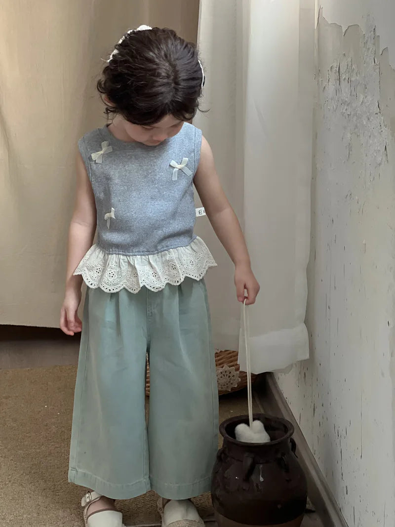 Children Clothes Girl 1-8 Y Baby Girls Clothes Cotton Sleeveless Top with Bowknot and Lace Trim Soft and Cute for Daily Wear
