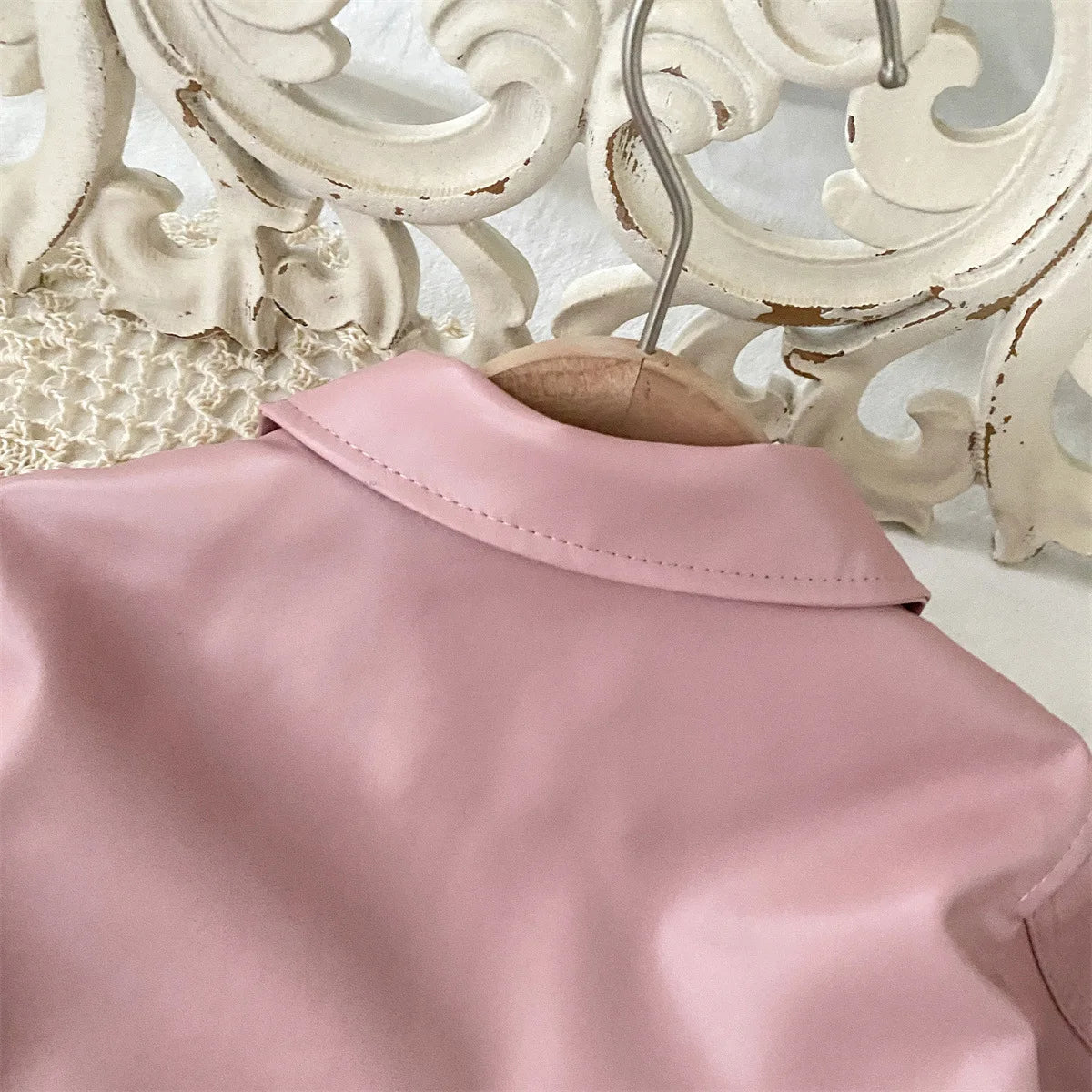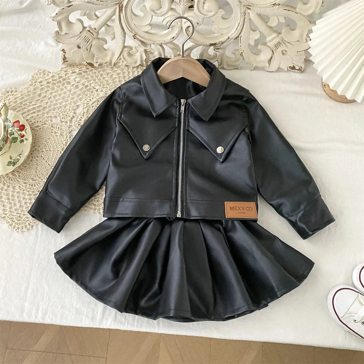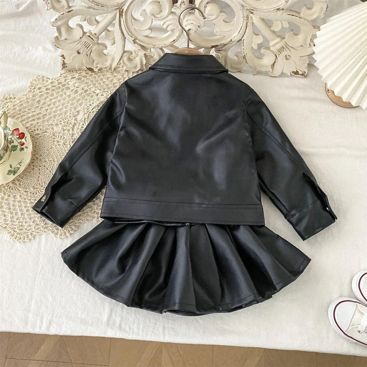 Children's Clothing Set 2025 Kids Clothes Autumn New Cool Girls Pu Leather Jacket With Short Skirt Fashion Two-Piece Outfit Set
