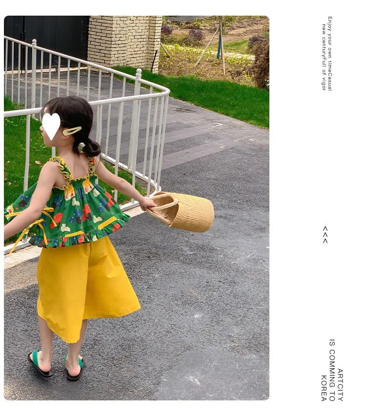 Children's Clothing Sets Cartoon Print Halter Top + Wide-leg Pants 2pcs Toddler Clothes for 2 To 7years Kids Boutique Clothes