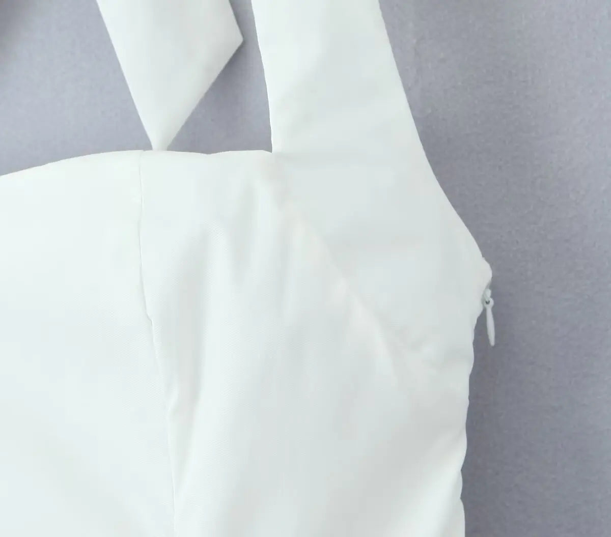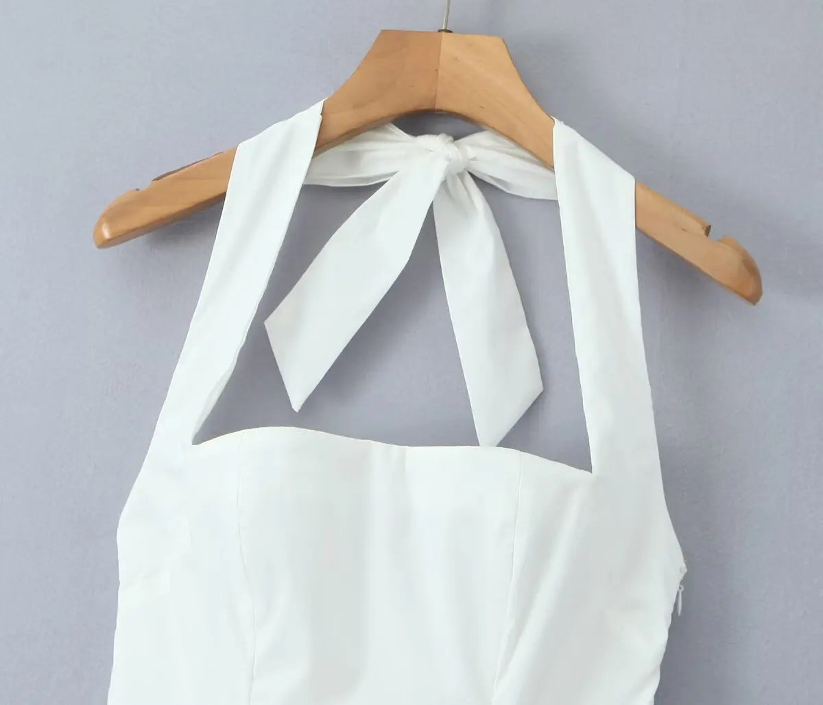 FSMG Sexy Solid Sleeveless Backless Halter Short Skirt Fashion Bow High Waist Slim A-line Dresses Summer Evening Party Vestidos