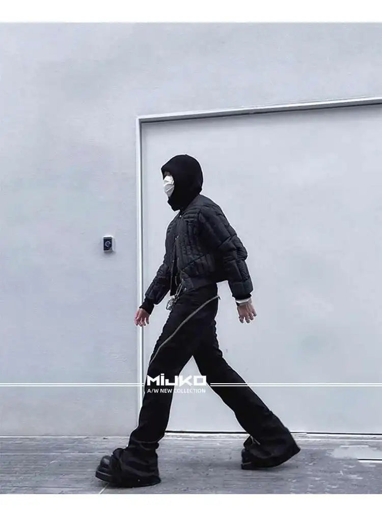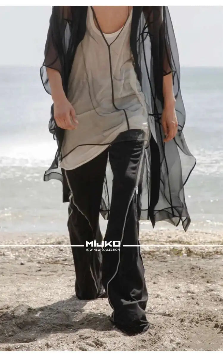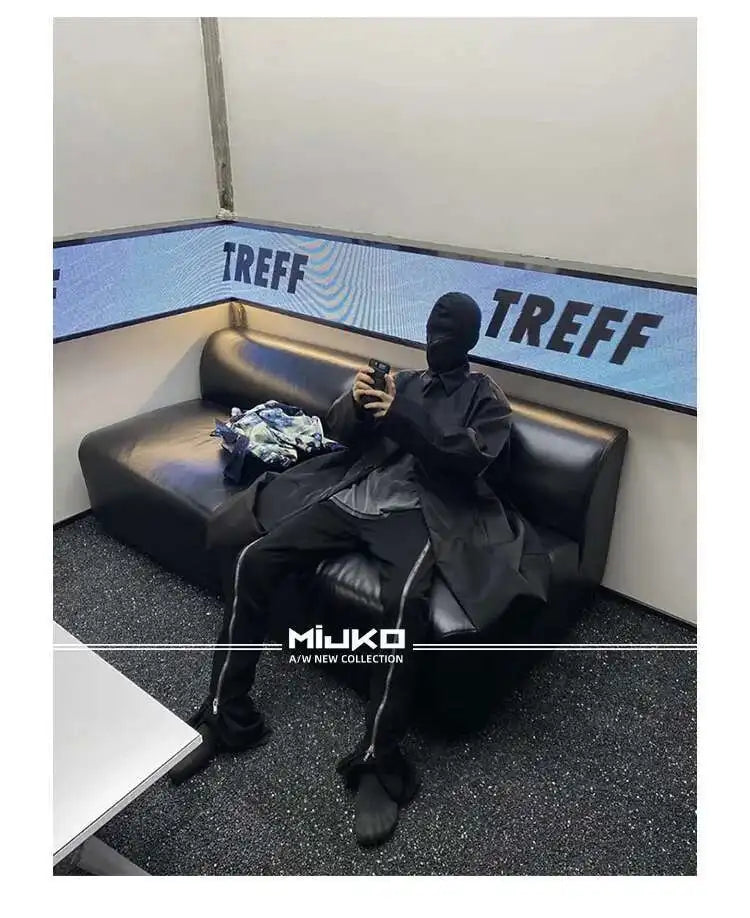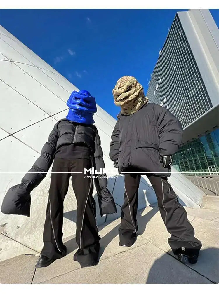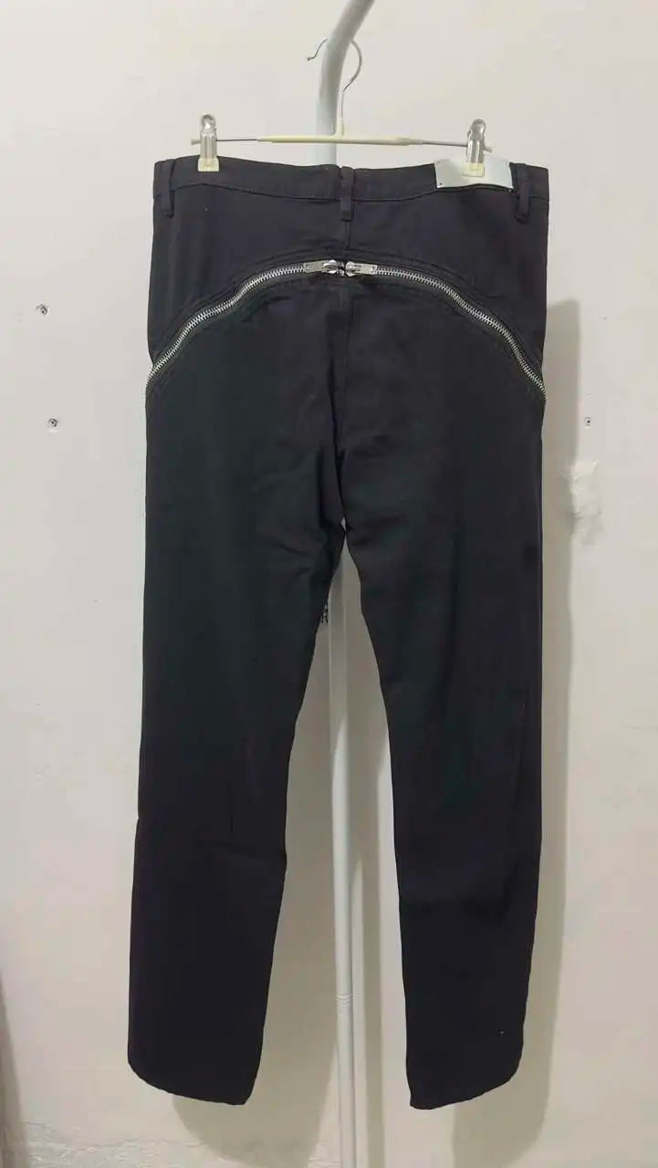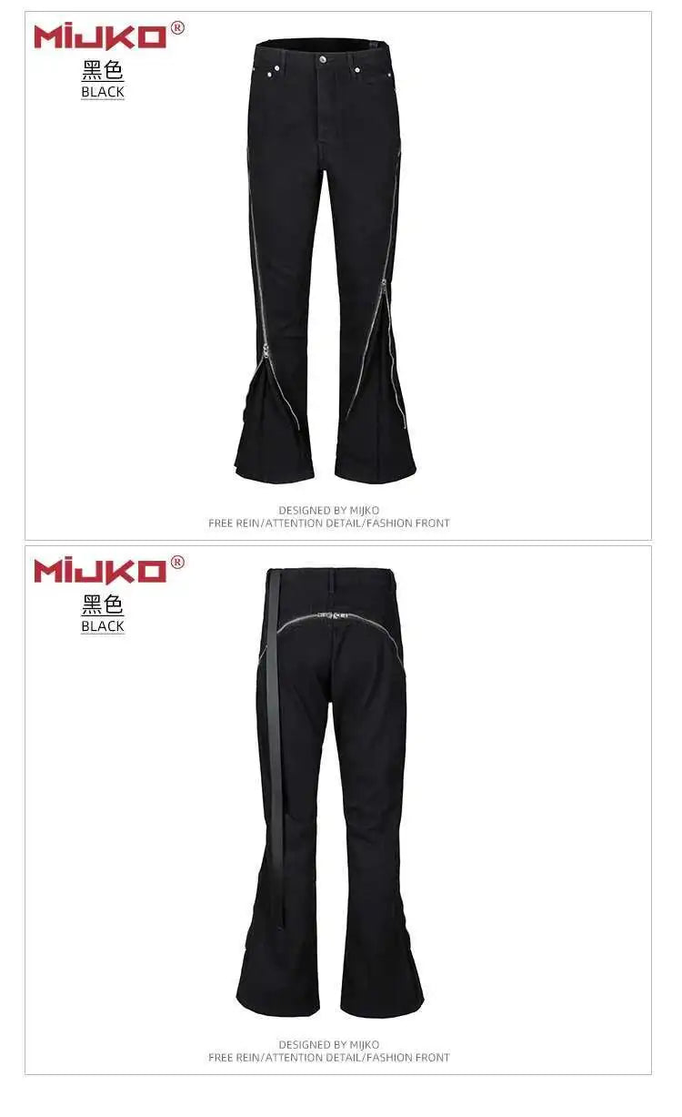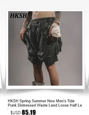 HKSH Men's Tide Streetwear Jeans RO Style Women's Autumn Winter Urban Spiral Track Twisted Large Zipper Dark Denim Pants HK1407