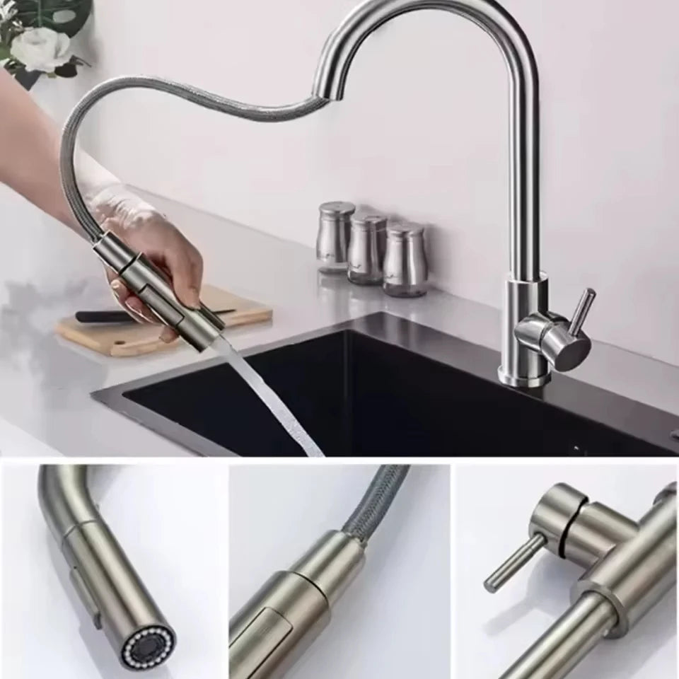 Kitchen Faucet Stainless Steel Brushed Faucet Kitchen Sink Faucet Pull-out Kitchen Water Faucet Single Hole Faucet