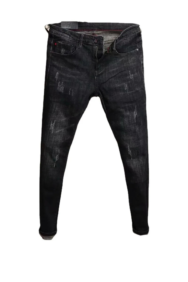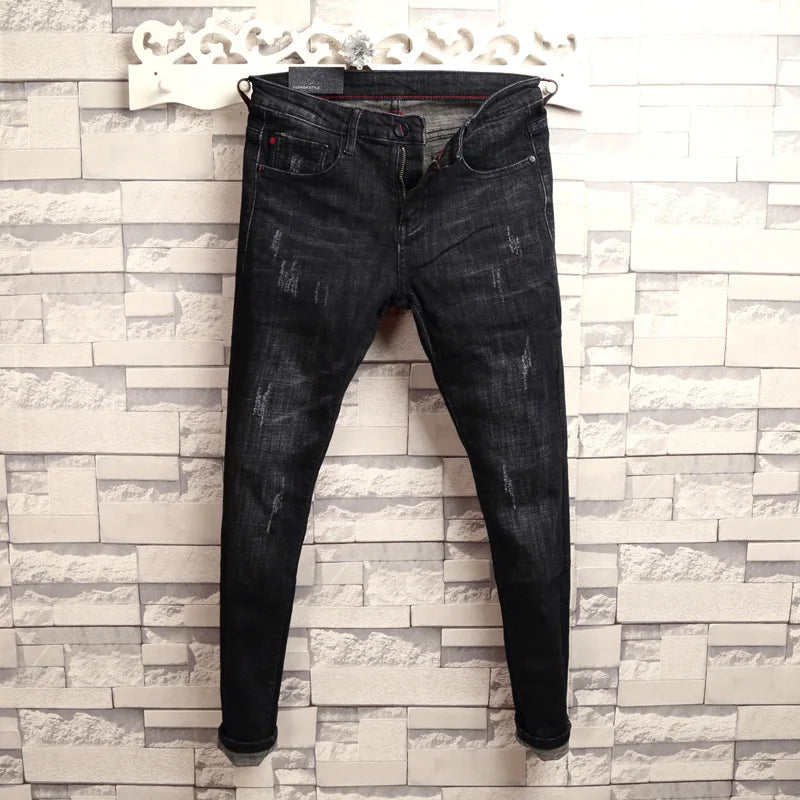 Man's Summer New Elastic Slim Fit Korean Spirit Guy Leggings Skinny Black Denim Jeans Casual Men Designer Ripped Pants