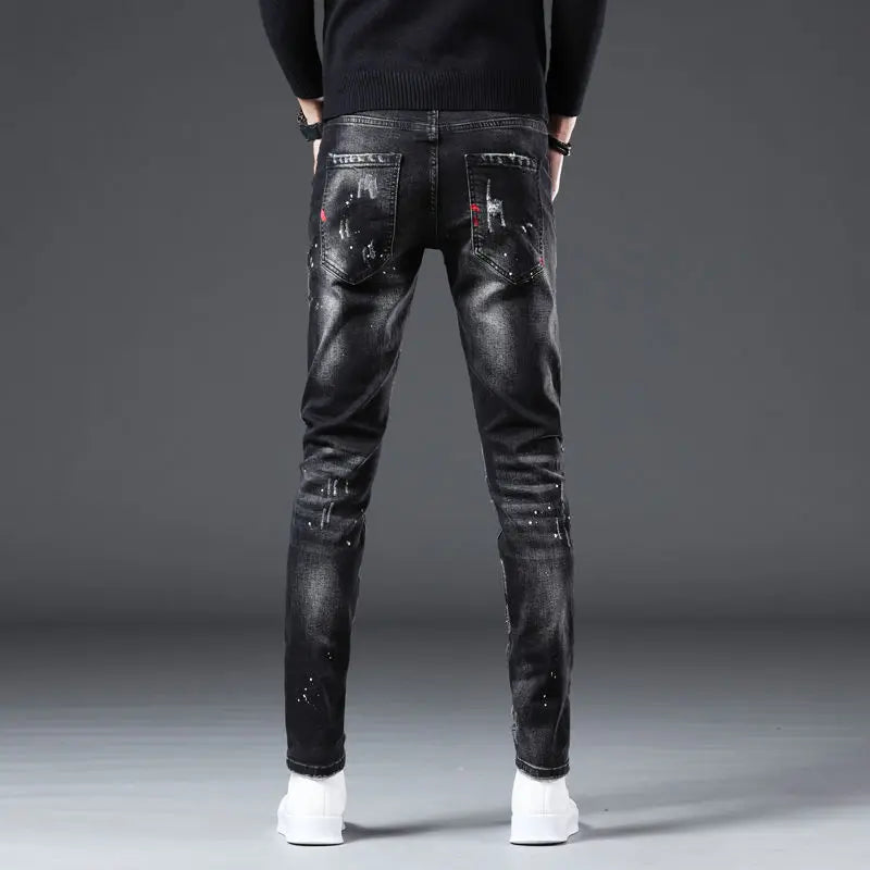 New Arrival Spring Autumn Denim Jeans for Men Slim Distressed Ripped Pants Paint Splatter Design Streetwear Luxury Slim Jeans
