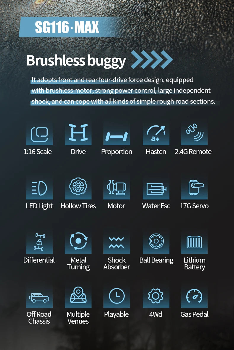SG116MAX 80KM/H High Speed RC Car Brushless 4WD Off-Road Drift Remote Control Car 1:16 Professional Racing Cars SG116PRO 40KM/H