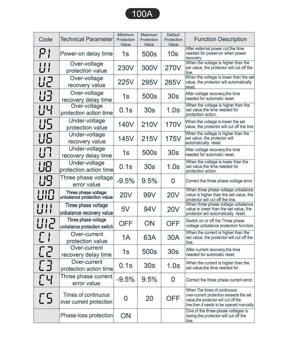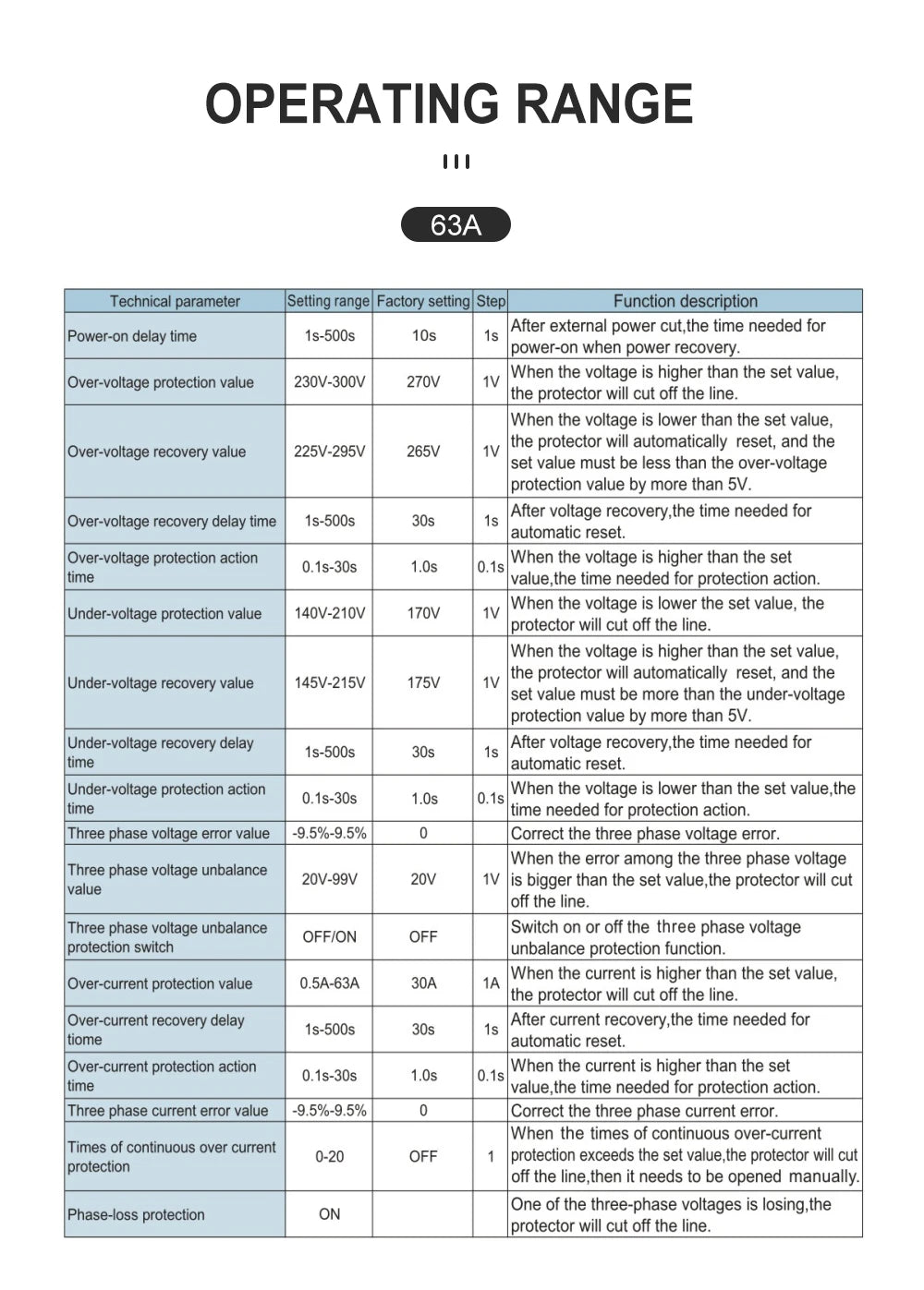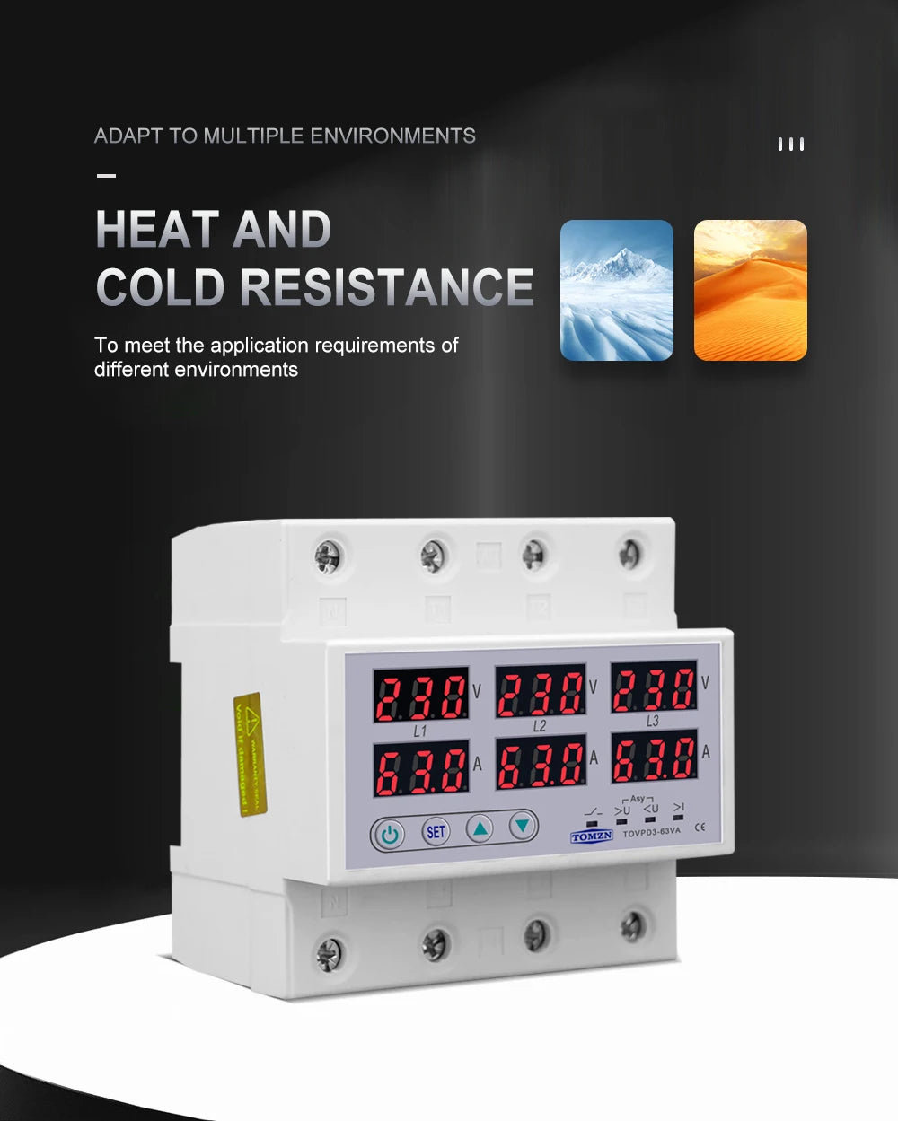 TOMZN TOVPD3-63VA Din Rail 3 Phase Adjustable Over and Under Voltage Protector relay with current protection 3*220V 380V