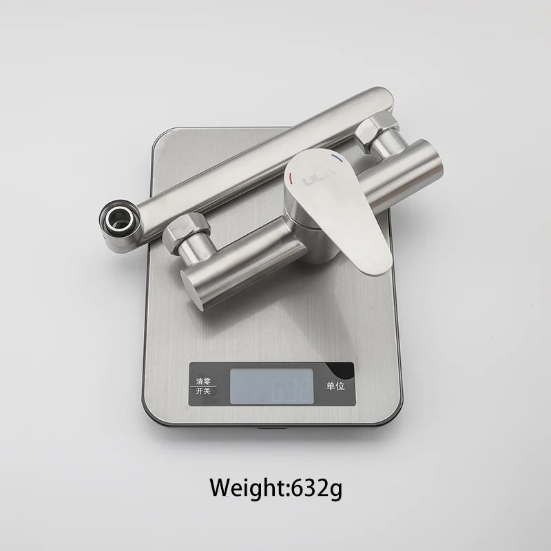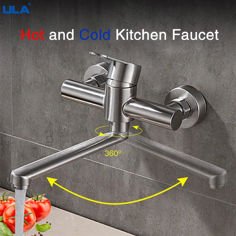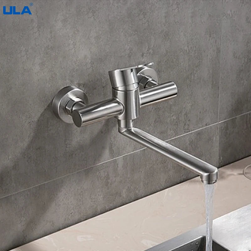 ULA Kitchen Faucets Stainless Steel Wall Mounted Dual Hole Bathroom 360 Rotate Basin Faucet Cold Hot Water Sink Crane Mixer Taps