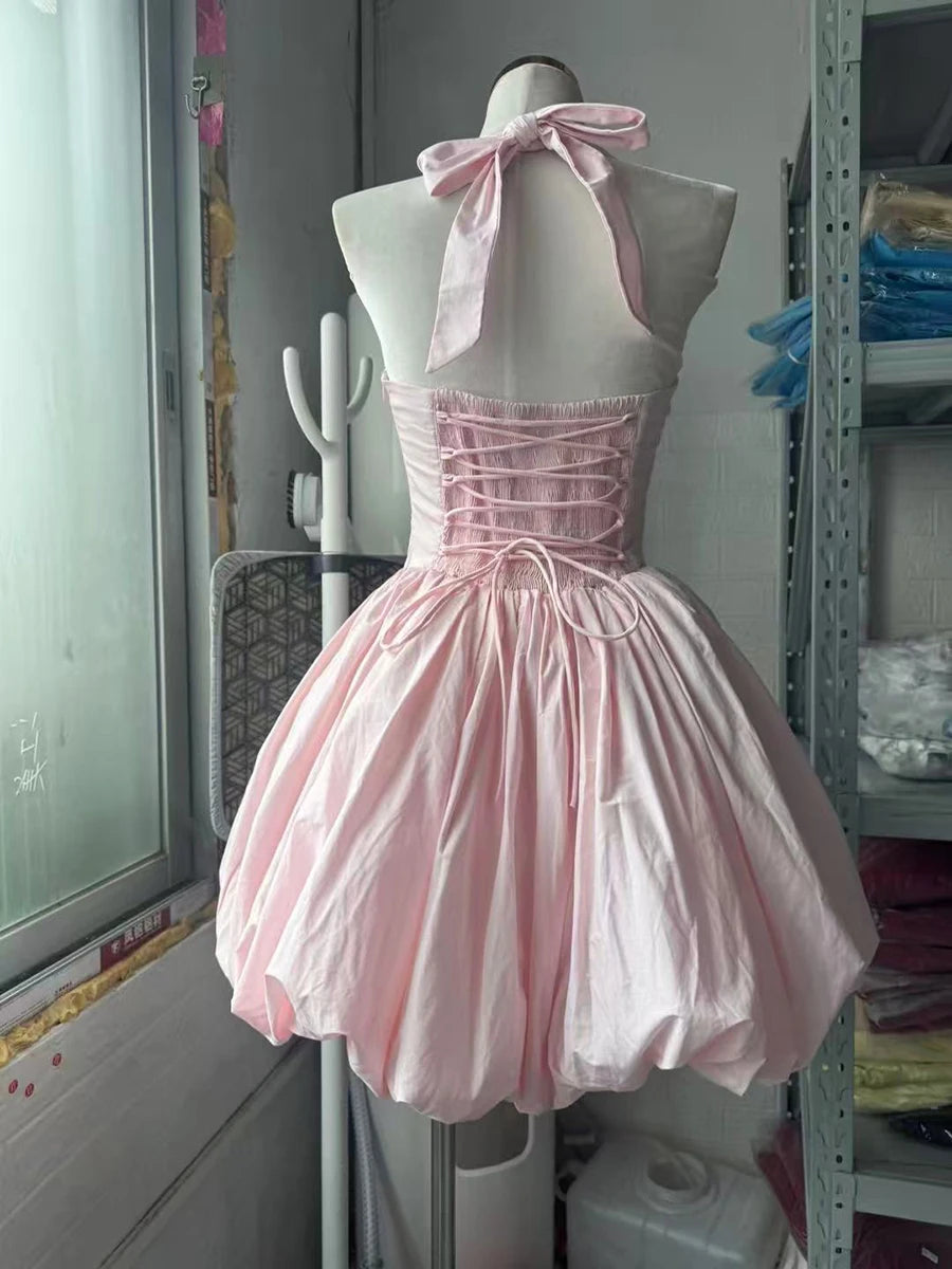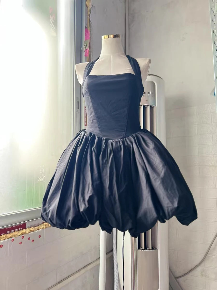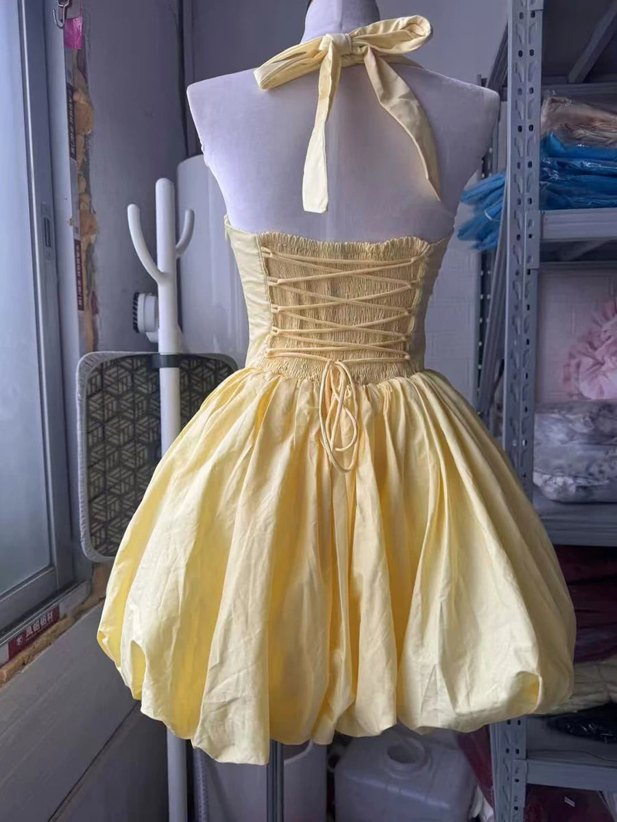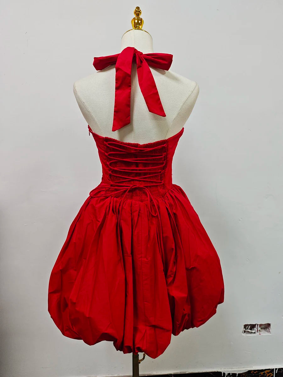 VGH Sexy Temperament Tunic Ball Gown for Women Halter Sleeveless Patchwork Lace Up Short Prom Dresses Female Clothing Fashion
