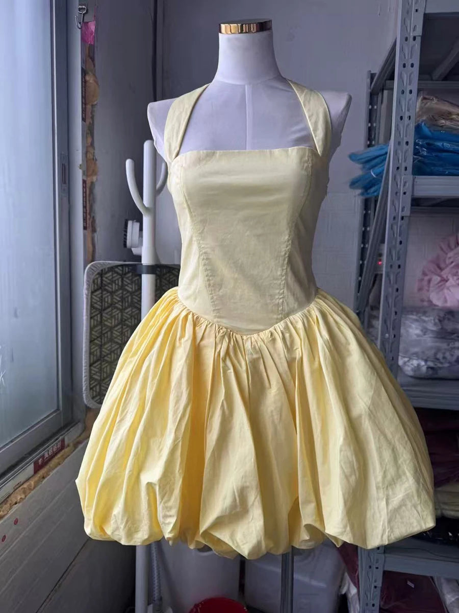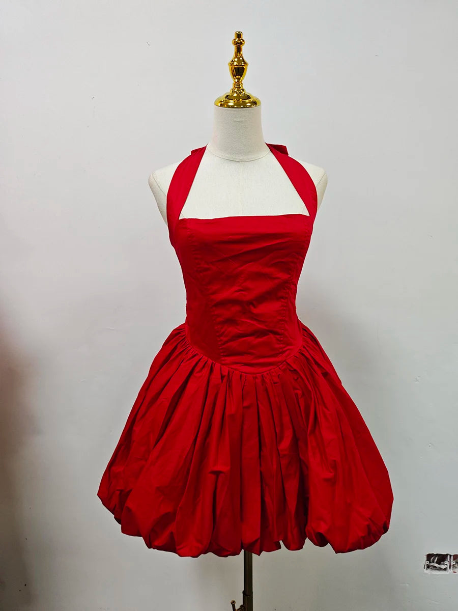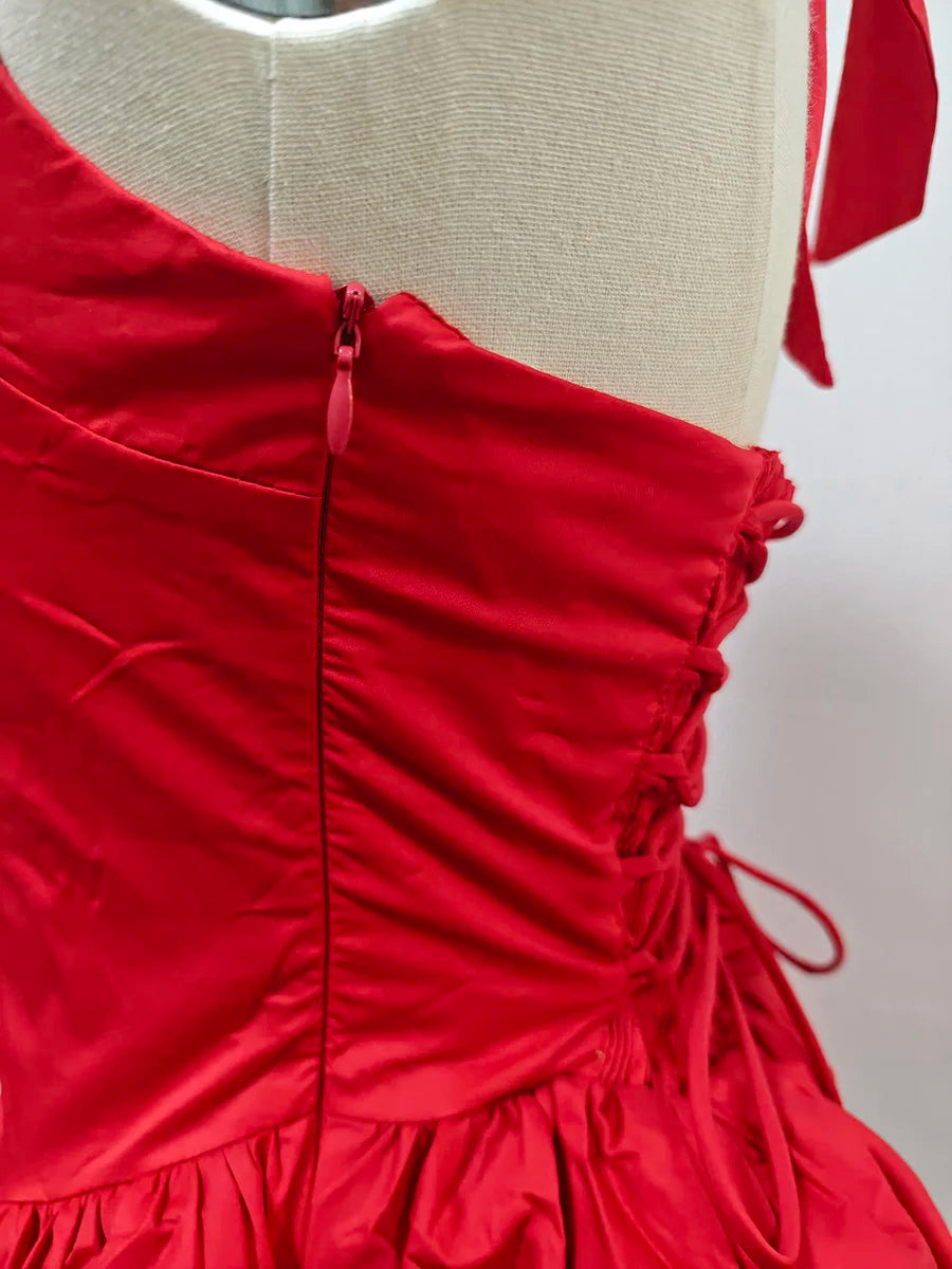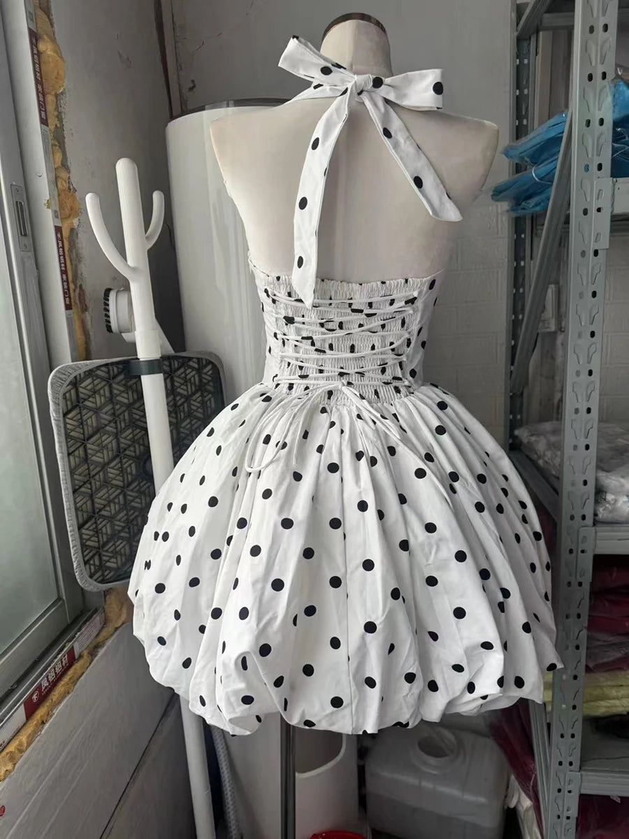 VGH Sexy Temperament Tunic Ball Gown for Women Halter Sleeveless Patchwork Lace Up Short Prom Dresses Female Clothing Fashion
