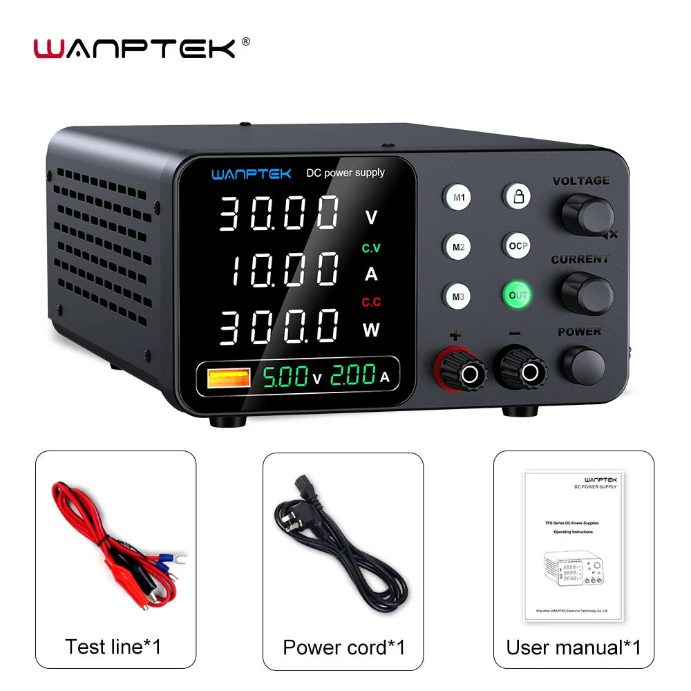 Wanptek Lab DC Power Supply Encoder adjustment Memory Adjustable 30V 10A Bench Power Source 160V 120V 60V 5A 3A Metal anodizing