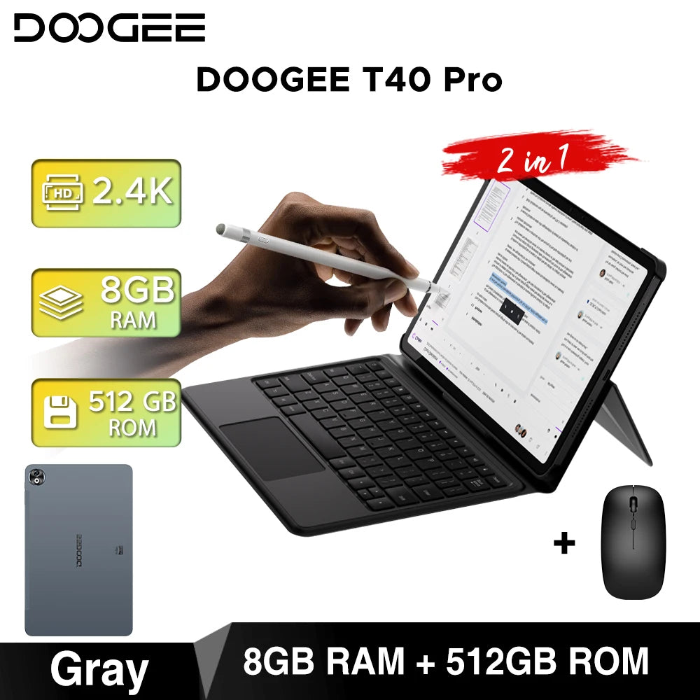 World Premiere DOOGEE T40 Pro Tablet 12" IPS 2.4K 20GB(8+12) 512GB Android 14 Helio G99 6nm 10800mAh 18W Charge 7.6mm ultra-thin