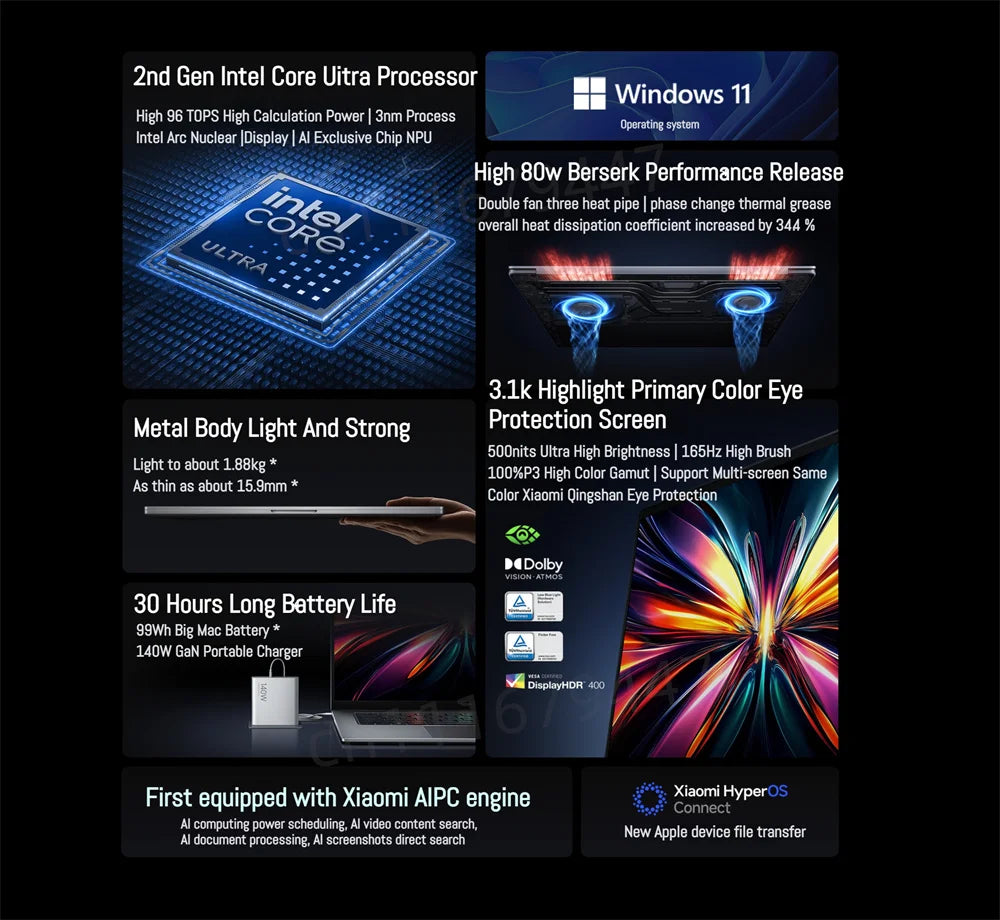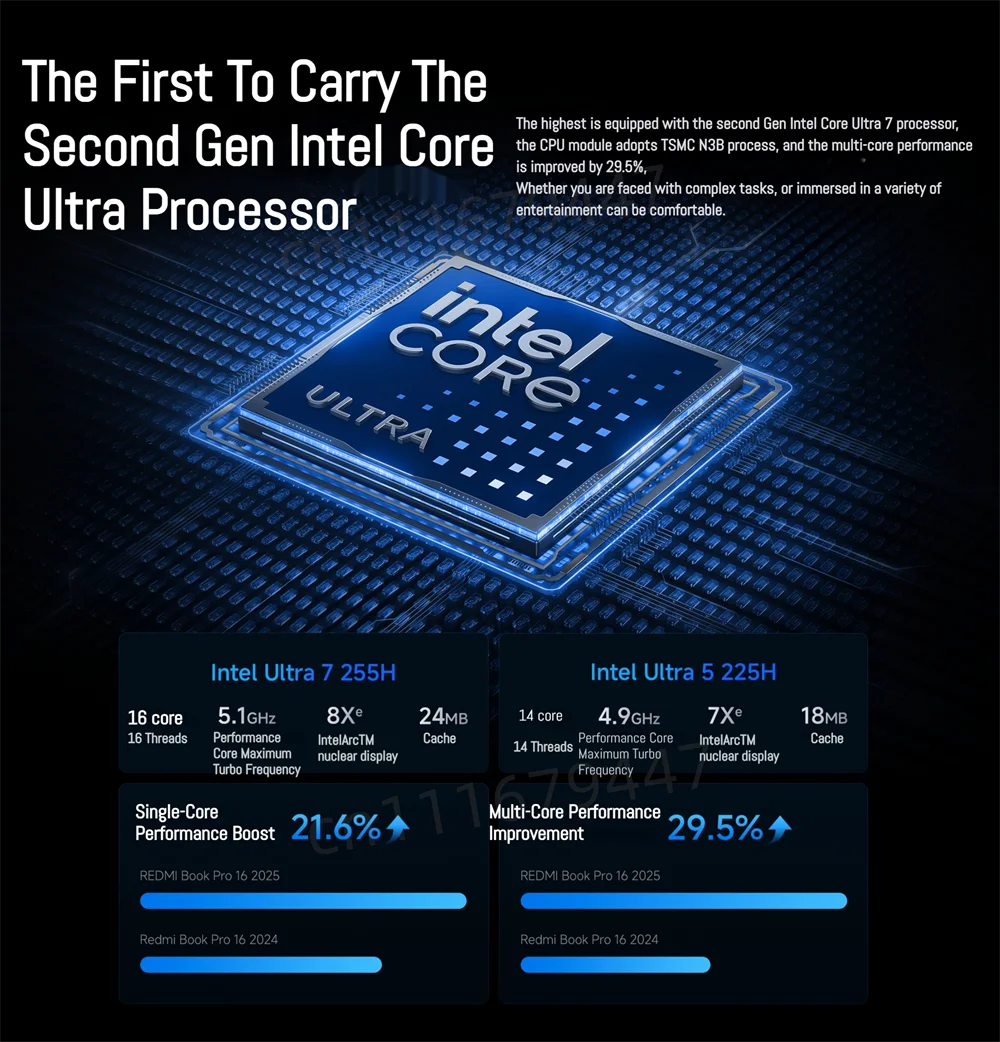 Xiaomi REDMI Book Pro 16 Laptop 2025 Ultra 7 255H/Ultra 5225H Intel Arc Graphics 32GB LPDDR5X 1T SSD 16-inch 3.1K 165Hz Screen